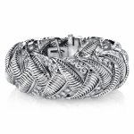 Vintage 1950s French diamond bracelet in platinum, featuring an elegant overlapping leaf design. Exquisite craftsmanship meets timeless luxury for a truly standout piece.