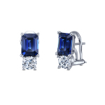 Timeless estate sapphire and diamond earrings in platinum. Featuring emerald-cut sapphires and round diamonds, these earrings offer unmatched elegance for any occasion. Perfect luxury gift.