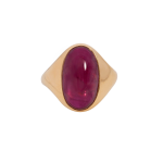 Elegant Cabochon Ruby Ring—crafted with a stunning ruby cabochon set in 18 karat yellow gold. Perfect for adding a touch of luxury to any outfit. Ideal gift for anniversaries or special occasions.